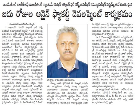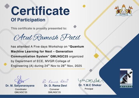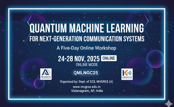 The Department of Electronics and Communication Engineering, MVGR College of Engineering (Autonomous), successfully organized a Five-Day Online Faculty Development Program (FDP) on “Quantum Machine Learning for Next-Generation Communication Systems” from 24th to 28th November 2025. The FDP was co-sponsored by Acctech Infosystems Pvt. Ltd. and Krinydi Technologies Pvt. Ltd.