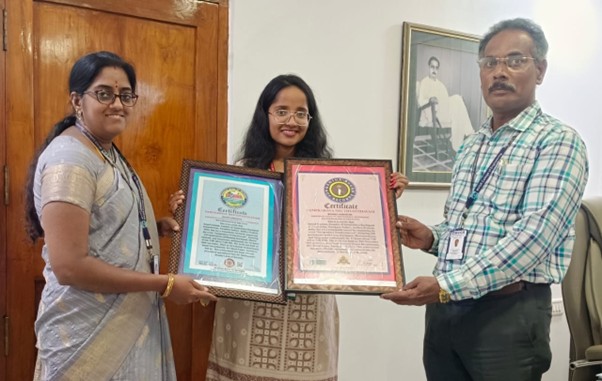 Mandala Harshitha (Reg. No. 25331E0040), an MBA First Year student, has brought great pride to the institution by securing entry into the International Wonder Book of Records and the International Genius Book of Records for her outstanding performance in Kuchipudi, Bharatanatyam, and Sangeetam.