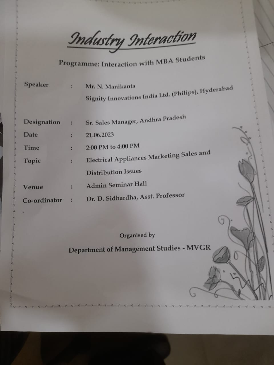 Industry Interaction with MBA students on Electrical Appliances Marketing Sales and Distribution Issue